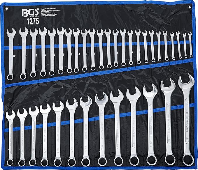 Detta högkvalitativa set med U-ringnycklar är varm-smitt och tillverkat i slitstarkt krom-vanadiumstål enligt DIN 3113-A, med förkromad och polerad yta för optimal hållbarhet och motståndskraft mot korrosion. Ringänden är 15° vinklad och har en tolvkantig profil som ger säkert grepp och effektiv kraftöverföring även i trånga utrymmen. Verktygen levereras i ett robust och praktiskt rullfodral av Tetron-material för enkel förvaring och transport. Setet innehåller totalt 36 nycklar med dubbla exemplar i storlekarna 6 till 17 mm: 2 st av varje i storlek 6 mm (BGS 1056), 7 mm (BGS 1057), 8 mm (BGS 1058), 9 mm (BGS 1059), 10 mm (BGS 1060), 11 mm (BGS 1061), 12 mm (BGS 1062), 13 mm (BGS 1063), 14 mm (BGS 1064), 15 mm (BGS 1065), 16 mm (BGS 1066) och 17 mm (BGS 1067), samt enstaka nycklar i storlekarna 18 mm (BGS 1068), 19 mm (BGS 1069), 20 mm (BGS 1070), 21 mm (BGS 1071), 22 mm (BGS 1072), 23 mm, 24 mm (BGS 1074), 25 mm (BGS 1075), 26 mm (BGS 1076), 27 mm (BGS 1077), 28 mm, 30 mm (BGS 1080) och 32 mm (BGS 1082). Denna omfattande samling är idealisk för både professionella verkstäder och avancerade hemmaanvändare som ställer höga krav på precision, hållbarhet och tillförlitlighet.