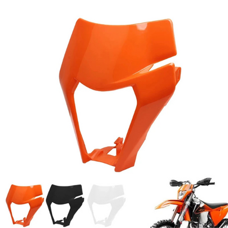 Enduro-strålkastare i maskdesign som passar KTM EXC, XC, SX, SXF, XCW och SMR modeller från 2021 och 2022. Denna plastlykta är ett stilrent och funktionellt tillbehör för din cross- eller enduromotorcykel. Designad för att ge ett aggressivt utseende samtidigt som den erbjuder bra ljusfördelning vid körning i mörker eller svaga ljusförhållanden. Tillverkad i slitstark plast som tål tuff terrängkörning och är enkel att montera. Perfekt för dig som vill uppgradera utseendet på din dirtbike och samtidigt förbättra sikten vid körning i skog och mark.