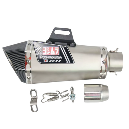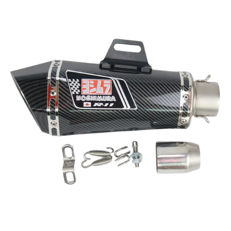 Ge din hoj ett sportigare sound, förbättrad estetik och bättre avgasflöde med detta universal slip-on avgassystem som passar de flesta motorcyklar med 36 mm till 51 mm anslutning. Den här modellen levereras komplett med en avtagbar DB Killer, så du själv kan bestämma ljudnivån – samt medföljer även sportiga klistermärken för en anpassad look.