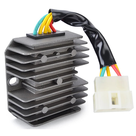 Denna motorcykelregulator och likriktare är utvecklad för att passa ett brett utbud av Linhai ATV-modeller inklusive 500, 300, 400 E2, 400 2B IRS, M150, T3a, 300 T3b samt 260 med OEM-referensnummer 22007. Regulatorn spelar en avgörande roll i fordonets elsystem genom att omvandla växelström från generatorn till stabil likström samtidigt som den reglerar spänningen för att skydda batteriet och övriga elektriska komponenter mot överladdning eller spänningsfall. En stabil strömförsörjning är nödvändig för att säkerställa korrekt funktion hos belysning, tändsystem, instrument och annan elektronik. Produkten är byggd med slitstarka interna komponenter och effektiv värmeavledning vilket gör att den tål kontinuerlig drift under både höga temperaturer och tuff terrängkörning. Regulatorn levereras klar för montering med standardkontakter som följer originalspecifikationerna vilket gör installationen snabb och enkel utan behov av anpassningar. Genom att ersätta en defekt eller instabil regulator återställs fordonets elektriska stabilitet vilket förbättrar driftsäkerheten och förlänger livslängden på batteriet samt andra anslutna delar. Denna regulator är ett pålitligt val för underhåll eller reparation av Linhai ATV och garanterar jämn prestanda även under krävande förhållanden.