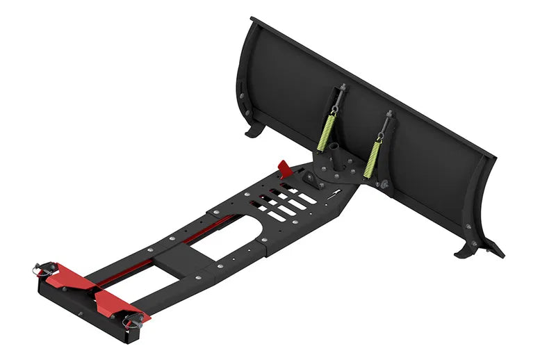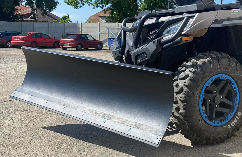 En snöplog är ett redskap som monteras på en fyrhjuling (ATV) för att effektivt flytta och rensa bort snö från vägar, uppfarter, gårdsplaner och andra ytor. Denna snöplog är utrustad med ett fjädrande system som automatiskt vinklar bladet om det stöter på hinder som kantstenar eller is, vilket skyddar både plog och ATV.